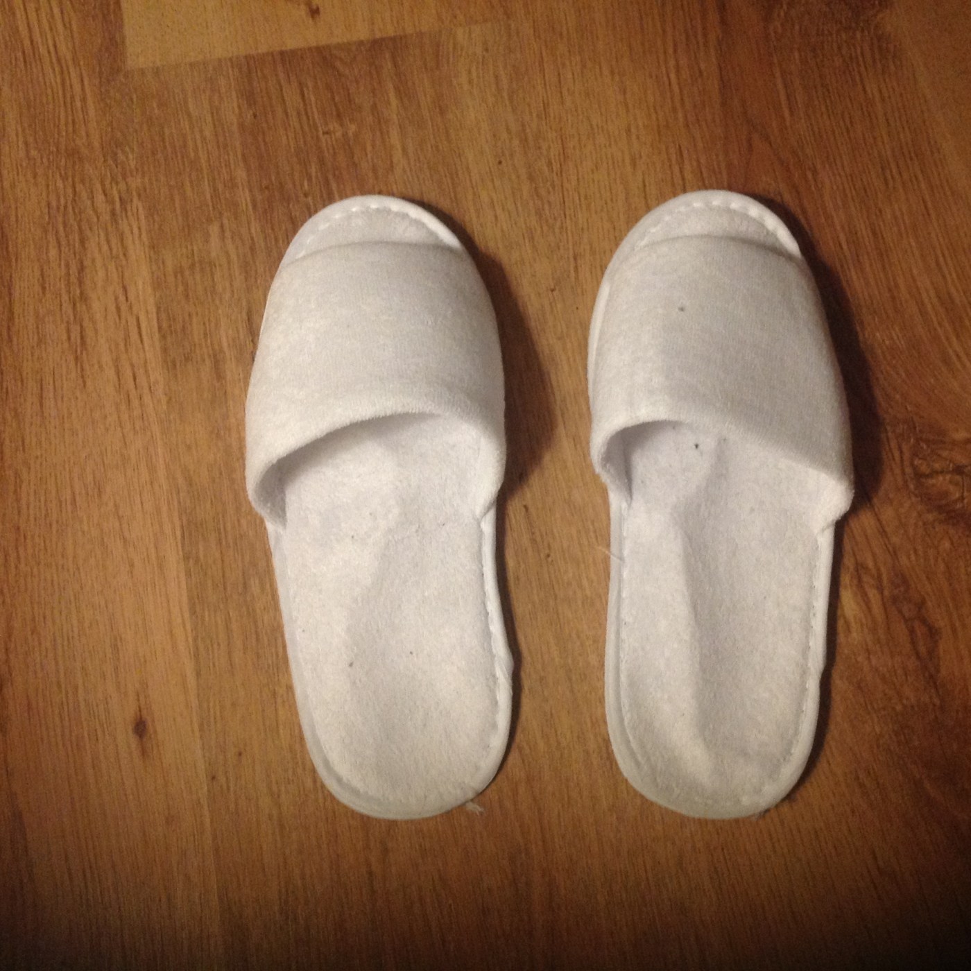 I start packing the few things I brought with me. And then notice the slippers In the corner. Now I admit to being the kind of man who’ll readily swipe tea bags and shower gel out of a hotel room. Although I do draw the line at toilet rolls and light bulbs! In the absence of tea and coffee making facilities I saw the slippers as fair game. After all, if I left them behind they’d just be binned.