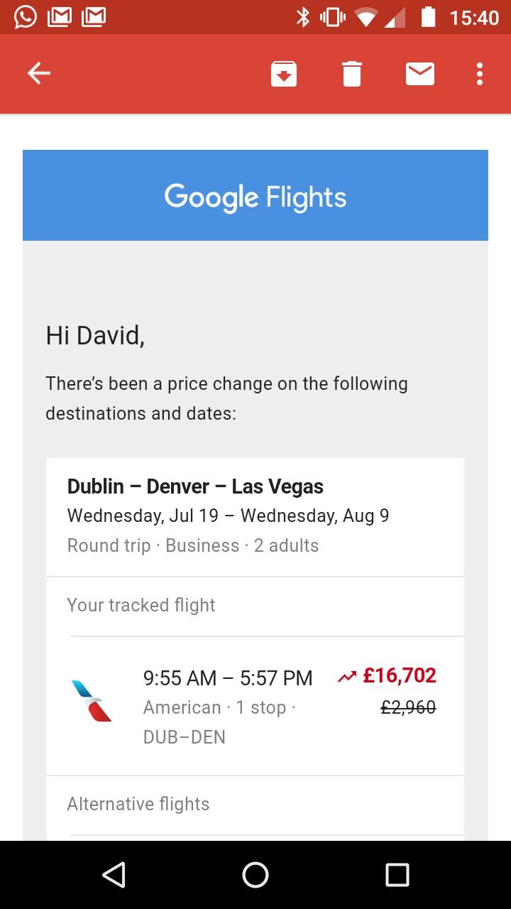 When the email arrived earlier, I thought I might go for something in September if the fare was right. So with joyous anticipation I opened the email to discover travel for two that had been under £3,000 was now … just over £16,000.