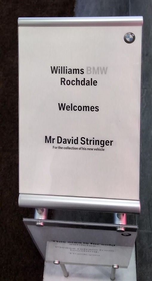 The picture above was one of the nice touches the dealer had yesterday. I also liked the magician style covering of my new car in a black cloth. And £40 of fuel generously loaded into the tank.