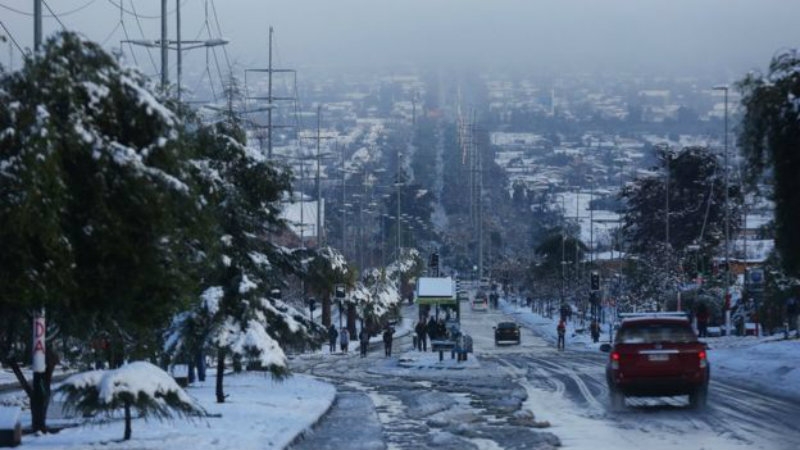 Pictures of cars skidding, children throwing snowballs and chaos usually associated with an inch of the white stuff on london’s toads being played out in the South American capital.
