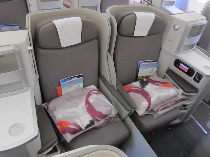 The first half of my sleep saw a reclined chair. I adjusted to fully flat later on which helped my back a little. We both slept well and my only criticism of the chair is that the bit where you stick you feet narrows too soon. But that’s certainly a minor niggle for the comfort enjoyed. And a tad better than those who’d disappeared into the economy door somewhere behind us.