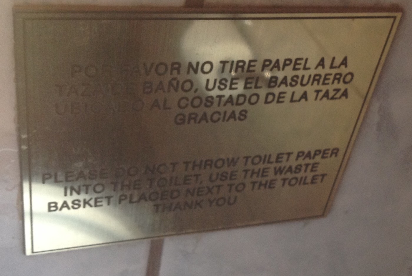 There are disadvantages to being a long way from anywhere. Our hotel is great. Informal. Small. Hot tub. But the sign in the bathroom was a bit of a shock.